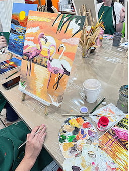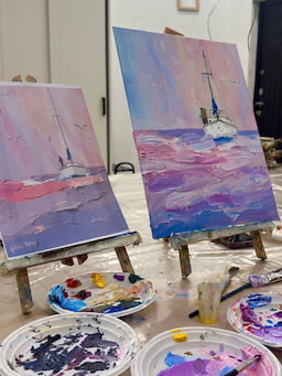 Все необходимые материалы предоставляются: кисти, краски, бумага, фартуки, глина, стеки, молды, инструменты), рабочее место полностью подготовлено.